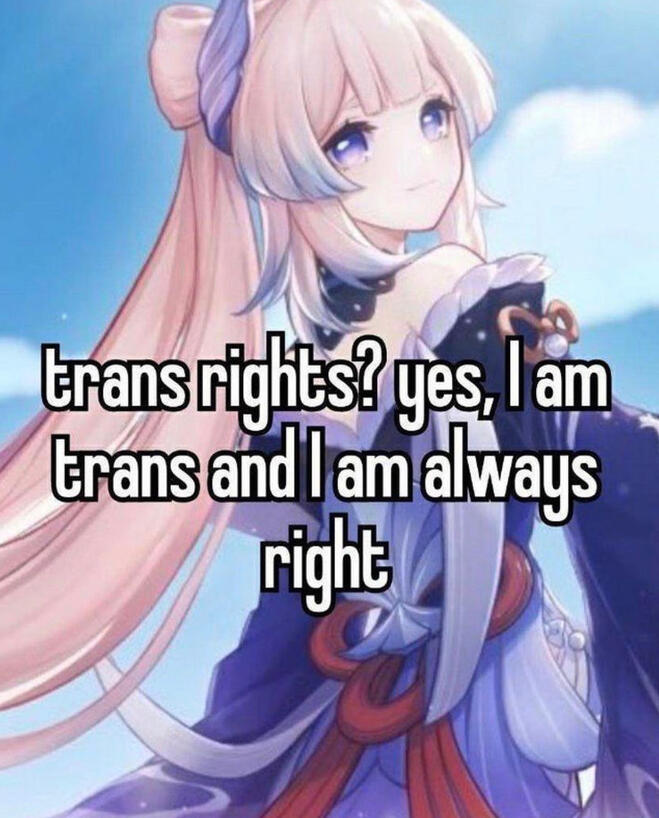 If you make any sexual comments about or to me a bit Meteorite will blow you up >:(If you’re transphobic in any capacity a swarm of locusts will ravage your village’s crops and everyone will blame it on you and exile you forever +100 years.If you actively suppress marginalized groups or don’t respect people’s harmless opinions every videogame you play will have the dog enemies be necessary to kill and they’ll all make the sad puppy noise.